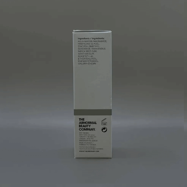 Aqua (Water), Niacinamide, Pentylene Glycol, Zinc PCA, Dimethyl Isosorbide, Tamarindus Indica Seed Gum, Xanthan Gum, Isoceteth-20, Ethoxydiglycol, Phenoxyethanol, Chlorphenesin.