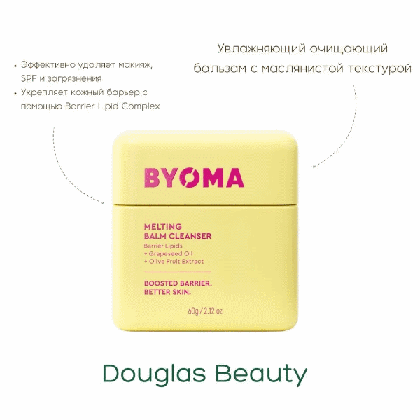Откройте для себя уникальное средство для умывания Byoma Melting Balm Cleanser, созданное специально для бережного и глубокого очищения кожи. Этот очищающий бальзам предназначен для ежедневного использования и подходит для всех типов кожи, включая чувствительную. Формула средства обогащена натуральными ингредиентами, которые эффективно удаляют макияж, загрязнения и излишки кожного себума, не нарушая естественного баланса кожи. Благодаря инновационной технологии плавления, Byoma Melting Balm превращается из плотного бальзама в нежное молочко при контакте с водой, обеспечивая легкость и комфорт в применении. Продукт не содержит агрессивных химических веществ и синтетических ароматизаторов, что делает его идеальным выбором для комплексного ухода за лицом. Ощутите увлажняющее и смягчающее действие с первым применением, оставляя вашу кожу свежей, сияющей и полной жизненных сил. Удобный формат 60g позволяет легко взять средство с собой в поездки, обеспечивая безупречный уход за кожей в любой ситуации. Попробуйте Byoma Melting Balm Cleanser и насладитесь результатами профессионального ухода за кожей в домашних условиях.