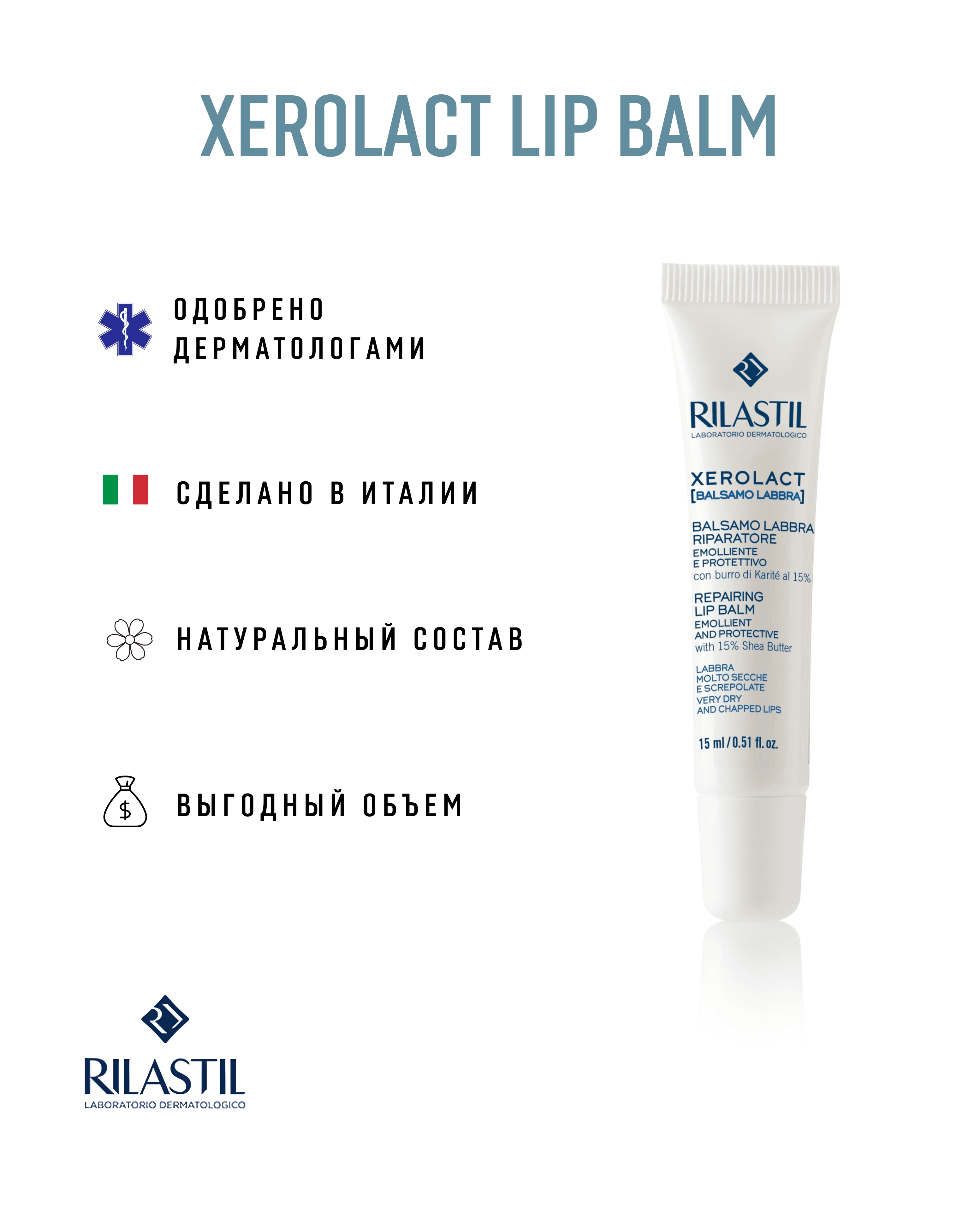 Rilastil XEROLACT - это уникальный восстанавливающий бальзам для губ, который поможет вам сохранить их красоту и здоровье. Этот продукт создан с использованием натуральных ингредиентов, таких как масло ши, экстракт женьшеня и витамин Е.