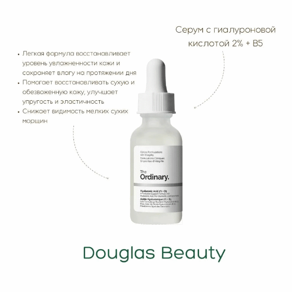 Сыворотка с гиалуроновой кислотой бренда The Ordinary высокоэффективное средство для увлажнения кожи.
